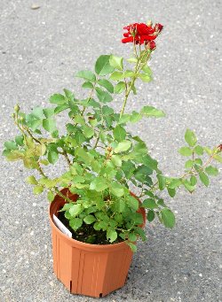 花はビロード光沢のある濃紅色で花弁数約25枚。弁質は良く、花房は多い。樹形は半横張りでよく茂る。別名「NewDairyMall」。